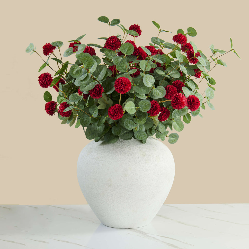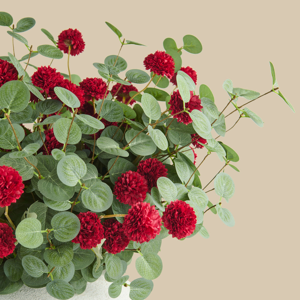 Faux Arrangement - Red Kiku and Eucalyptus